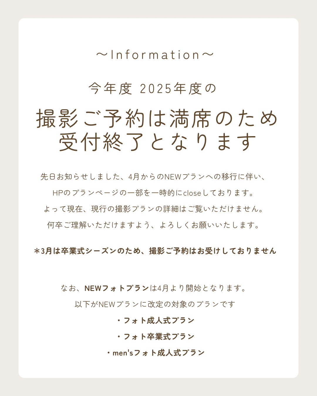 2025年度 「撮影ご予約」受付終了のお知らせ